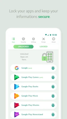 ☆ If you use your locked apps often so you can set standby time after unlock any app.