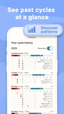• Get alerts from your period tracker when your cycle changes or PMS symptoms shift.
