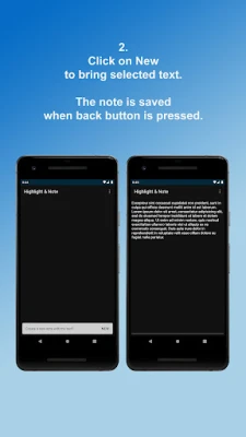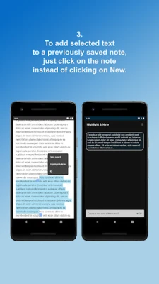 For example, select a part of an article you read on a browser. Click on options button of copy - paste bar. Then click on Highlight & Note. The app will be opened. When the app is opened, click on New in order to create a new note of the selected text. The app automatically brings the selected text. You can edit the note at this point if you want to.