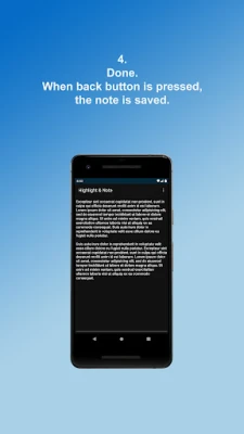 When the back button is pressed, the note is saved, the app ends itself and user turns to previous screen automatically . This configuration provides fast changeover between the article user read and the app. You can read, edit and delete the saved notes by opening the app.