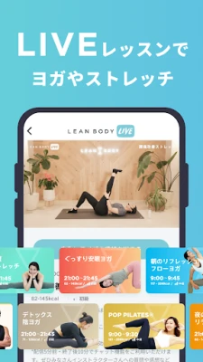 LEAN BODYは、1,000本以上のオンラインレッスン動画とLIVE配信が見放題のフィットネスアプリです。