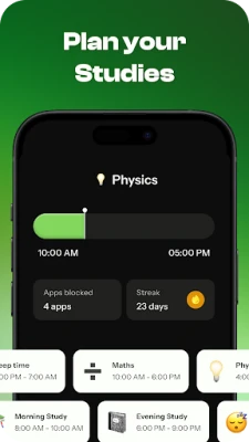 🎯 Block Scheduling: Set automatic block times for apps — during study hours, bedtime, or work sessions — to keep yourself on track without relying on willpower.