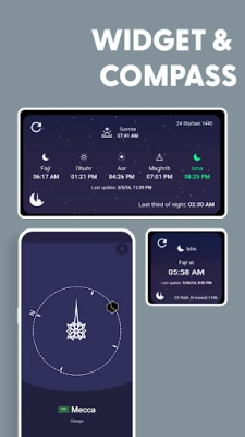 Main Features: • Location-based prayer times with adhan, a 30-day calendar, and widgets • Qibla Compass • Offline Quran reader available with three reader modes, equipped with translation, audio, and transliteration • Quran Audio Player • Home screen widgets • Islamic calendar • Tafsirs Including Ibn Kathir and Jalal al-Din al Suyuti • Hadith reader with over 15 famous books • 99 Names of Allah • Last 1/3rd of the night calculator • Prayer tracker • Adaptive themes that change with each prayer time • Dhikr & Dua module • And more!